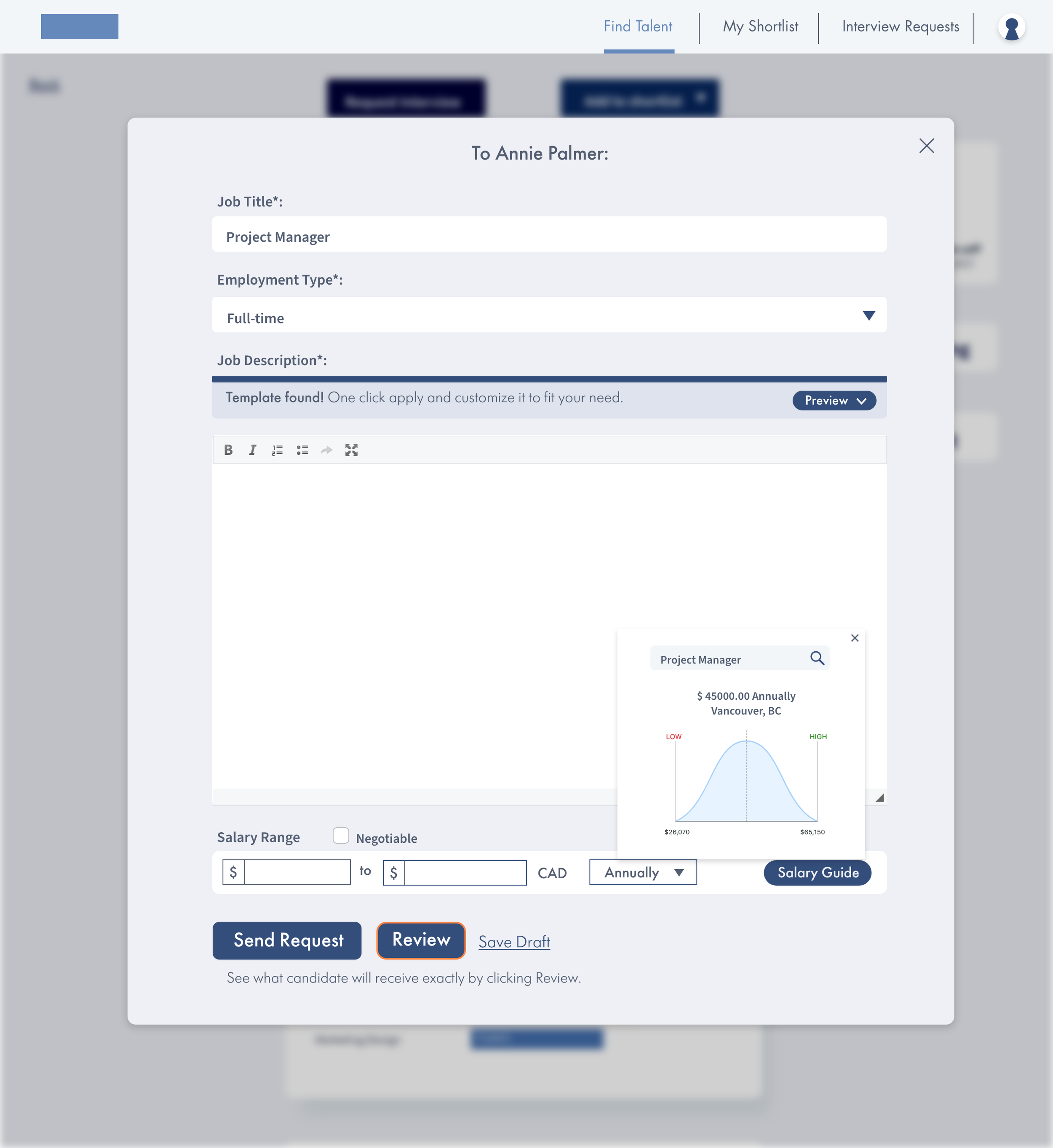 Recruiters can draft an invitation or offer with AI-generated salary insights. This allows employers to send multiple offers to grouped candidates in shortlist to save time, and it’s easier to manage.