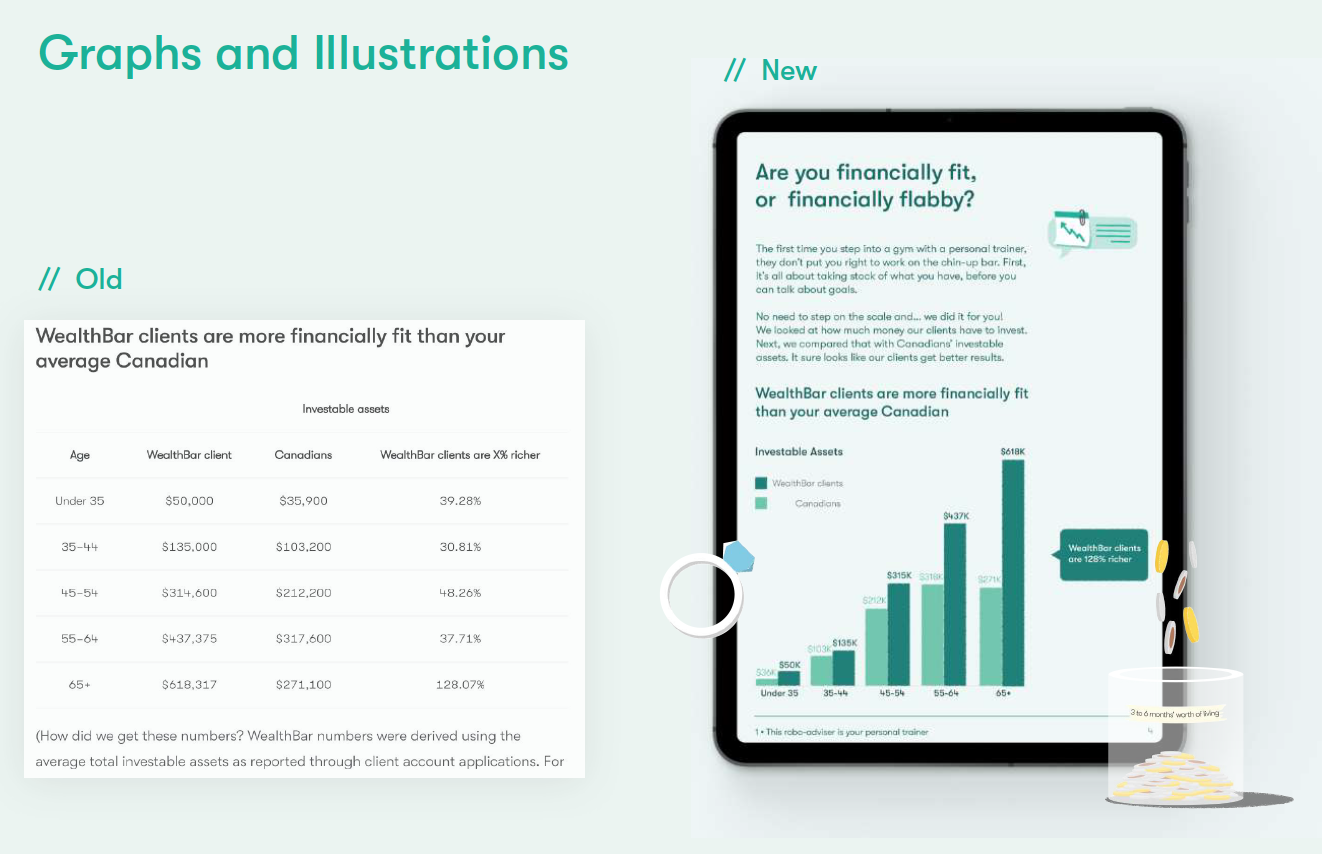 Illustrations are another way to help the user understand the content and to raise readers’ interest. Many people skip reading articles or ebooks because of the lack of visualization. So I made the ebook more fun with colorful but on-brand illustrations. Combined their original chars of graphs with some of the fun visual elements.